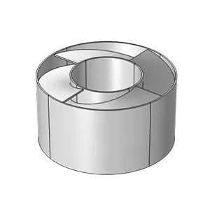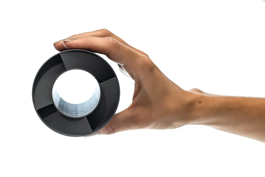 Ograniczenie długości tłumika do zaledwie 49 mm, przy konieczności zachowania otwartej konstrukcji, ostatecznie wykluczyło tradycyjne rozwiązania dźwiękochłonne. Ich skuteczność przy tak małej grubości byłaby niewystarczająca, ponieważ zależy ona głównie od masy powierzchniowej i oporności przepływu powietrza, a nie geometrii.