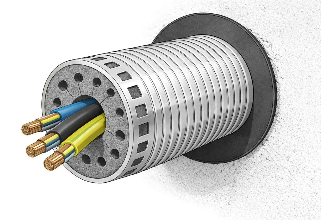 Zarówno w specjalistycznych produktach naszego klienta, jak i w ogólnym budownictwie, przeloty kablowe stanowią punkt krytyczny. Każde otwarcie przegrody (ściany), niezbędne do przeprowadzenia przewodów, stwarza ryzyko transmisji ognia i obniża jej izolacyjność akustyczną.